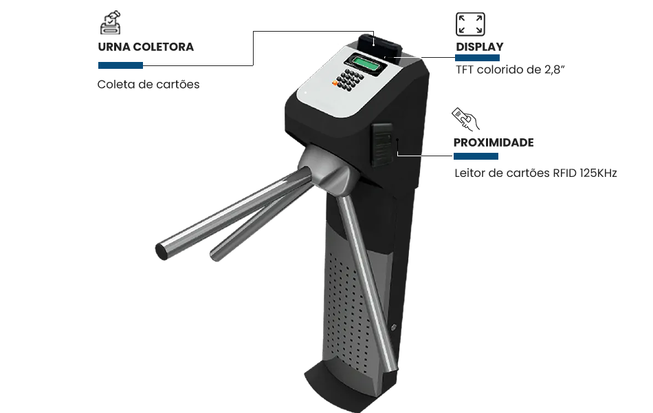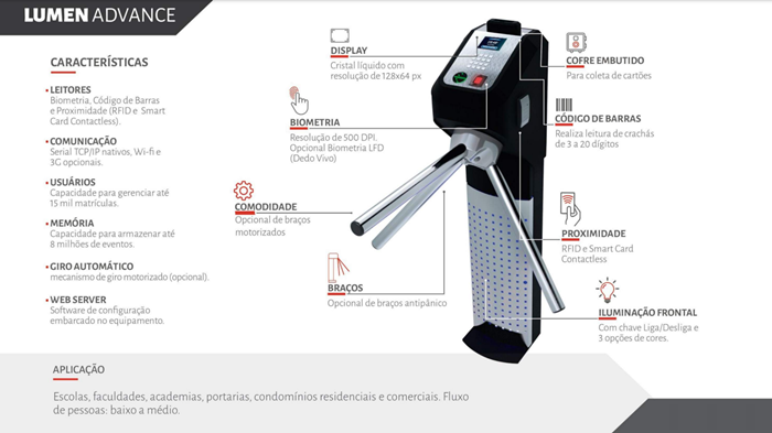 •Integração da catraca com outros softwares: o equipamento pode ser integrado a qualquer software